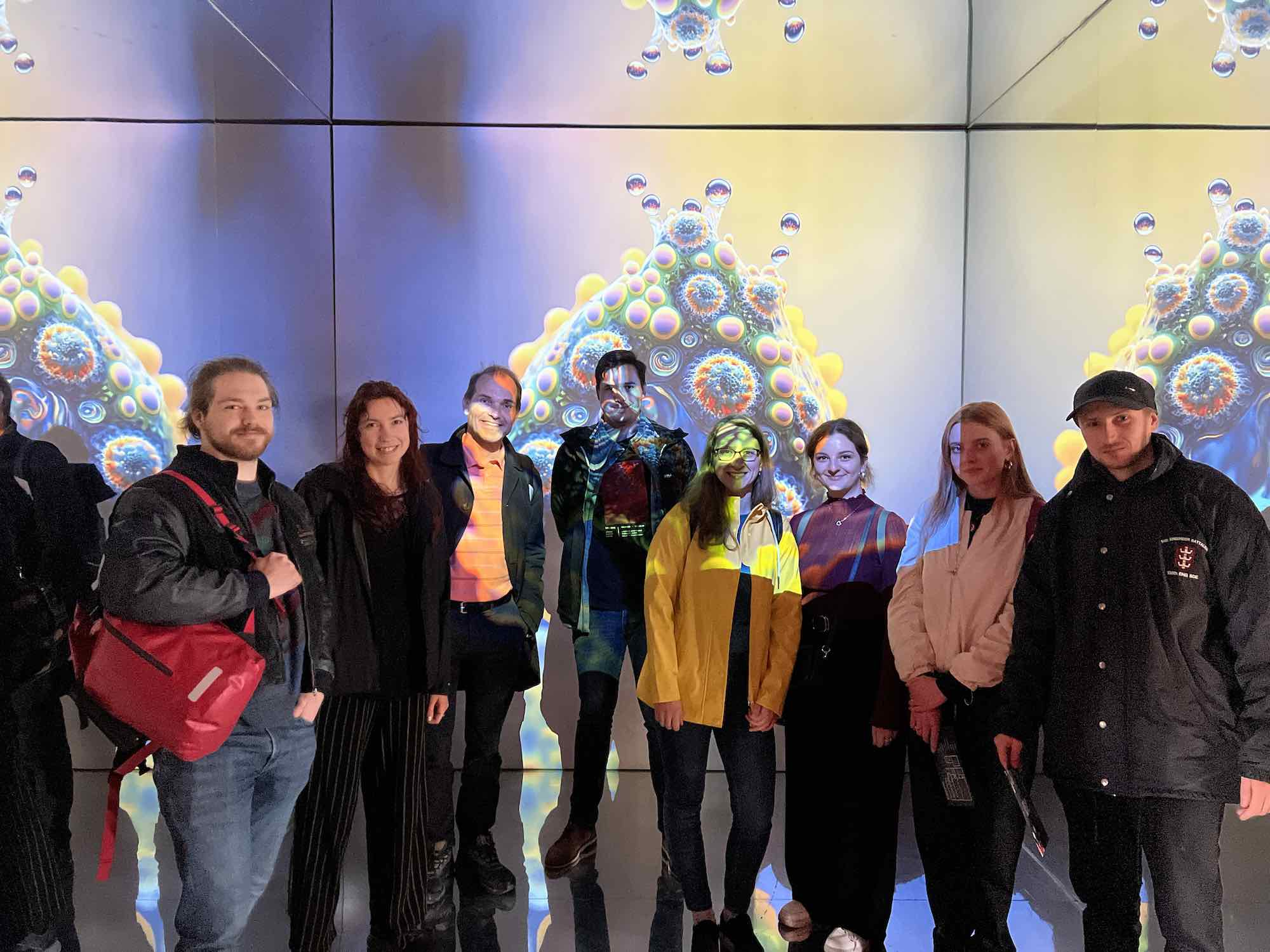 On May 22, 2025, our chair and four IRD students, took part in an excursion to Leipzig. First, we visited the special exhibition "Futures" at the Museum of Applied Arts, where speculative design exhibits and materials of the future were presented. Afterwards, we continued to the "Origins" exhibition at the Kunstkraftwerk. There, the origins of the universe were artistically interpreted with immersive projections. Our final stop was at the Spinnerei, where we visited several art galleries.